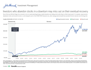 Flyer that depicts the impact of time and events on stocks and bonds.